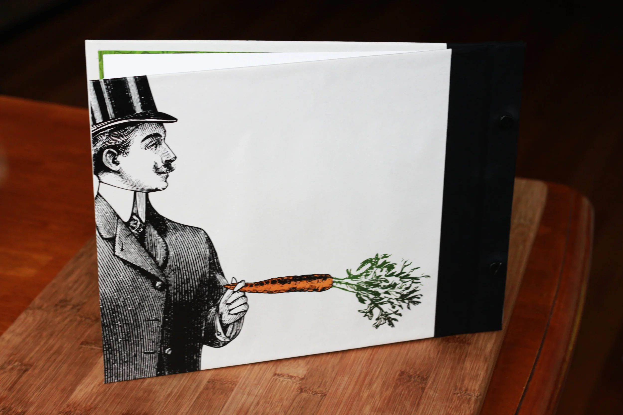 A Type of Cookbook was an exploration of information design and continuity in a multi-page format. Illustrations and engravings are used playfully throughout the design. This book was handcrafted using book board, book cloth, PVA glue, recycled paper, and marble endpaper. Screwposts were used for binding.
